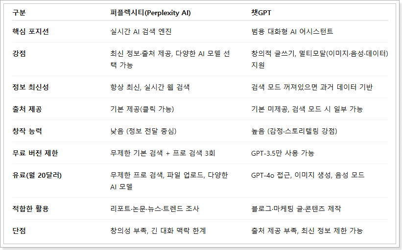 퍼플렉시티 vs 챗GPT, 요금제·장단점 비교 분석
